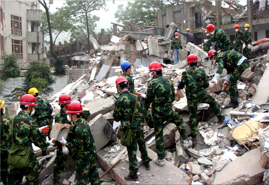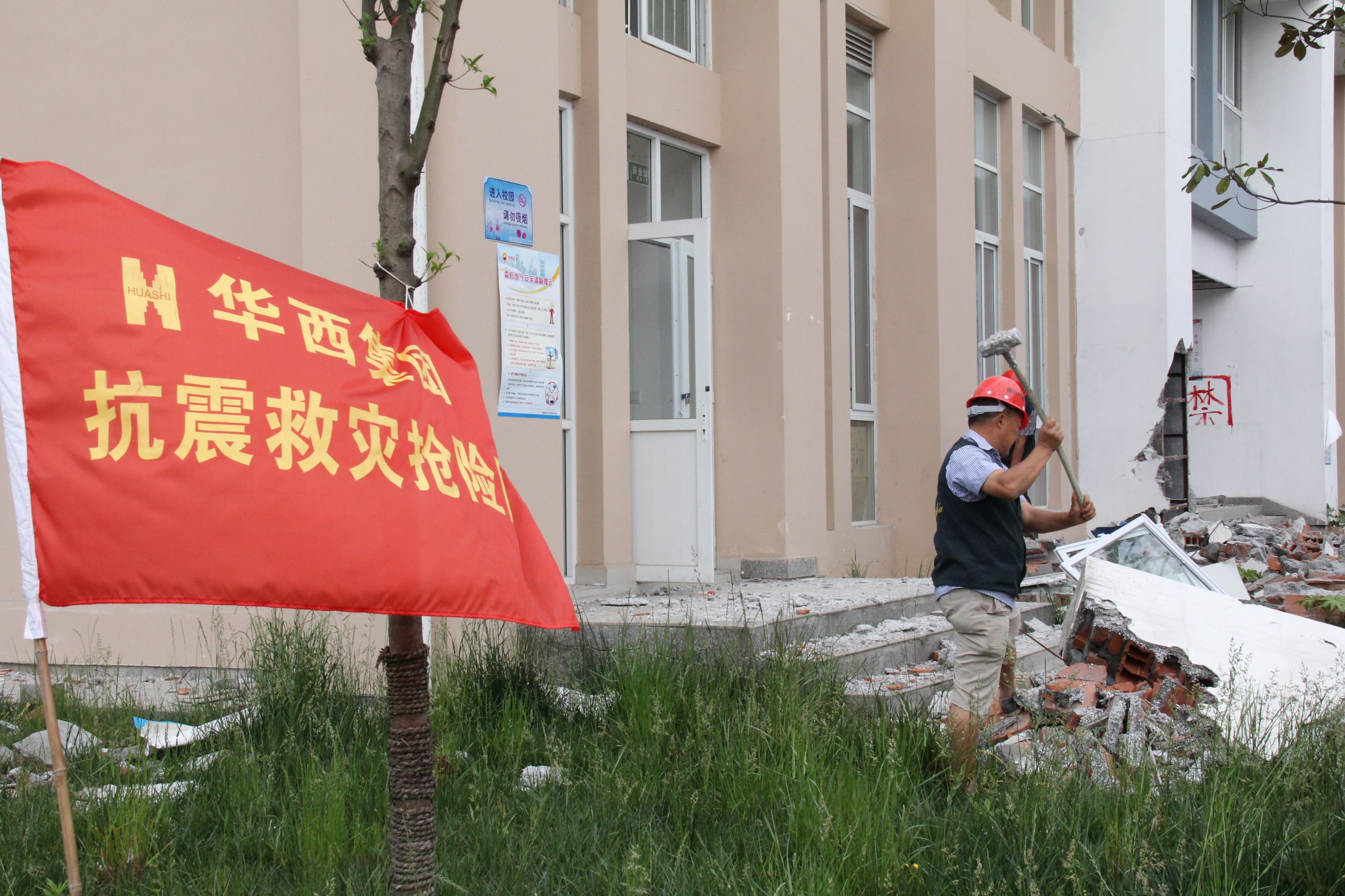 青年突擊隊在蘆山地震現場進行房屋鑒定工作