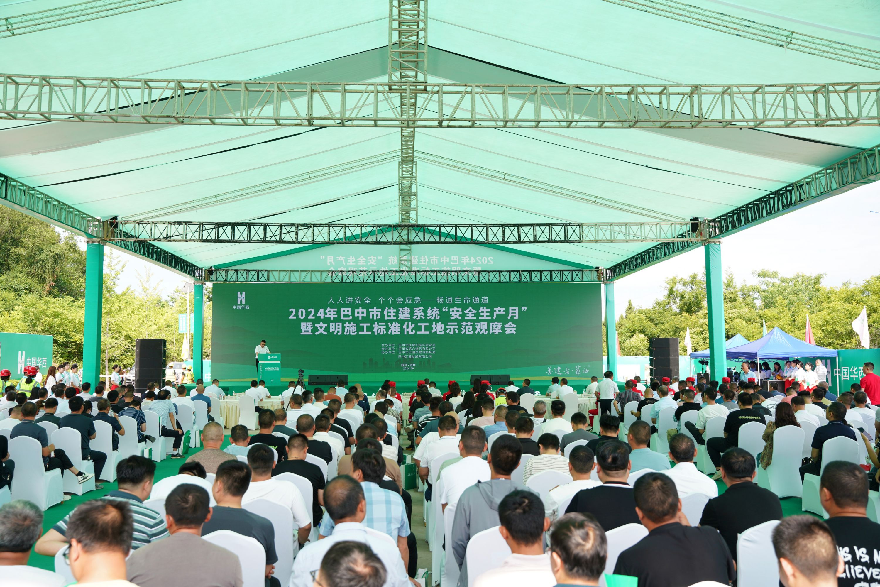 6月17日,2024年巴中市住建系統(tǒng)“安全生產(chǎn)月”暨文明施工標(biāo)準(zhǔn)化工地示范觀摩會(huì)在四川六建巴中教育園區(qū)項(xiàng)目順利舉行。巴中市住建局副局長(zhǎng)張嵐、中國(guó)華西企業(yè)股份有限公司工程管理中心副總監(jiān)趙兵、四川六建副總經(jīng)理梅放、巴中市巴州區(qū)教育科技局局長(zhǎng)劉祥君、巴州區(qū)住建局總工程師楊秀明、巴中匯鑫發(fā)展有限公司董事長(zhǎng)李苑華出席活動(dòng),會(huì)議由巴中市安監(jiān)站站長(zhǎng)劉武主持。此次觀摩會(huì)以“人人講安全,個(gè)個(gè)會(huì)應(yīng)急—暢通生命通道”為主題,現(xiàn)場(chǎng)觀摩人數(shù)約350人。