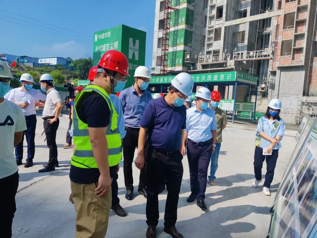 余長明、鐘渝一行深入項目施工現(xiàn)場,聽取了項目部關(guān)于安全、質(zhì)量、進度、防疫等方面的工作匯報,重點對現(xiàn)場安全生產(chǎn)、文明施工、疫情防控落實等情況進行了檢查,并參觀了項目樣板間。