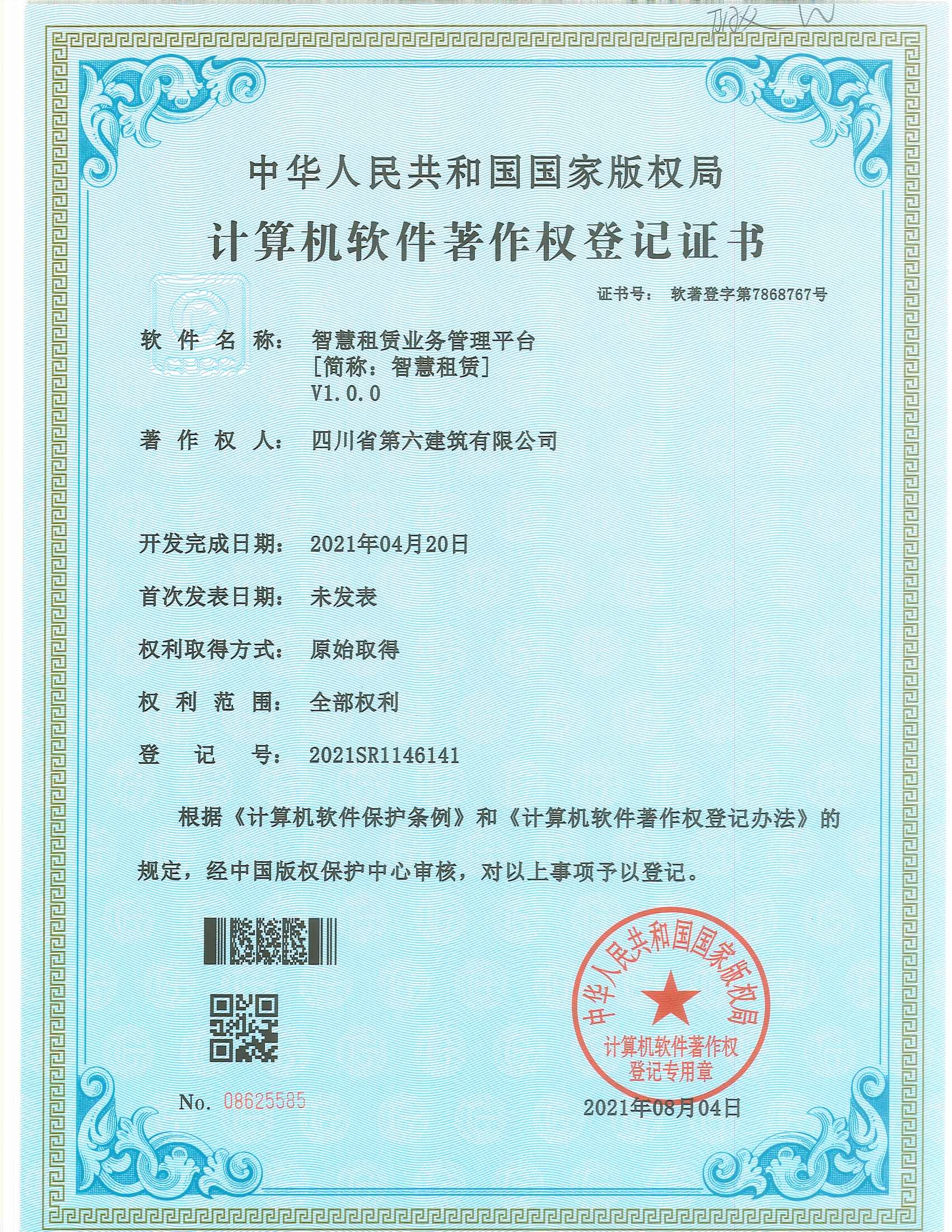 為提高管理效率,向數(shù)字化管理轉(zhuǎn)型,結(jié)合生產(chǎn)管理需要,租賃分公司歷經(jīng)15個月完成了智慧租賃業(yè)務管理平臺(1.0版)的研發(fā),并于2021年5月通過公司專家組的驗收。同年4月開始向國家版權(quán)局申報軟件著作權(quán),于8月4日獲得了國家版權(quán)局頒發(fā)的計算機軟件著作權(quán)登記證書。