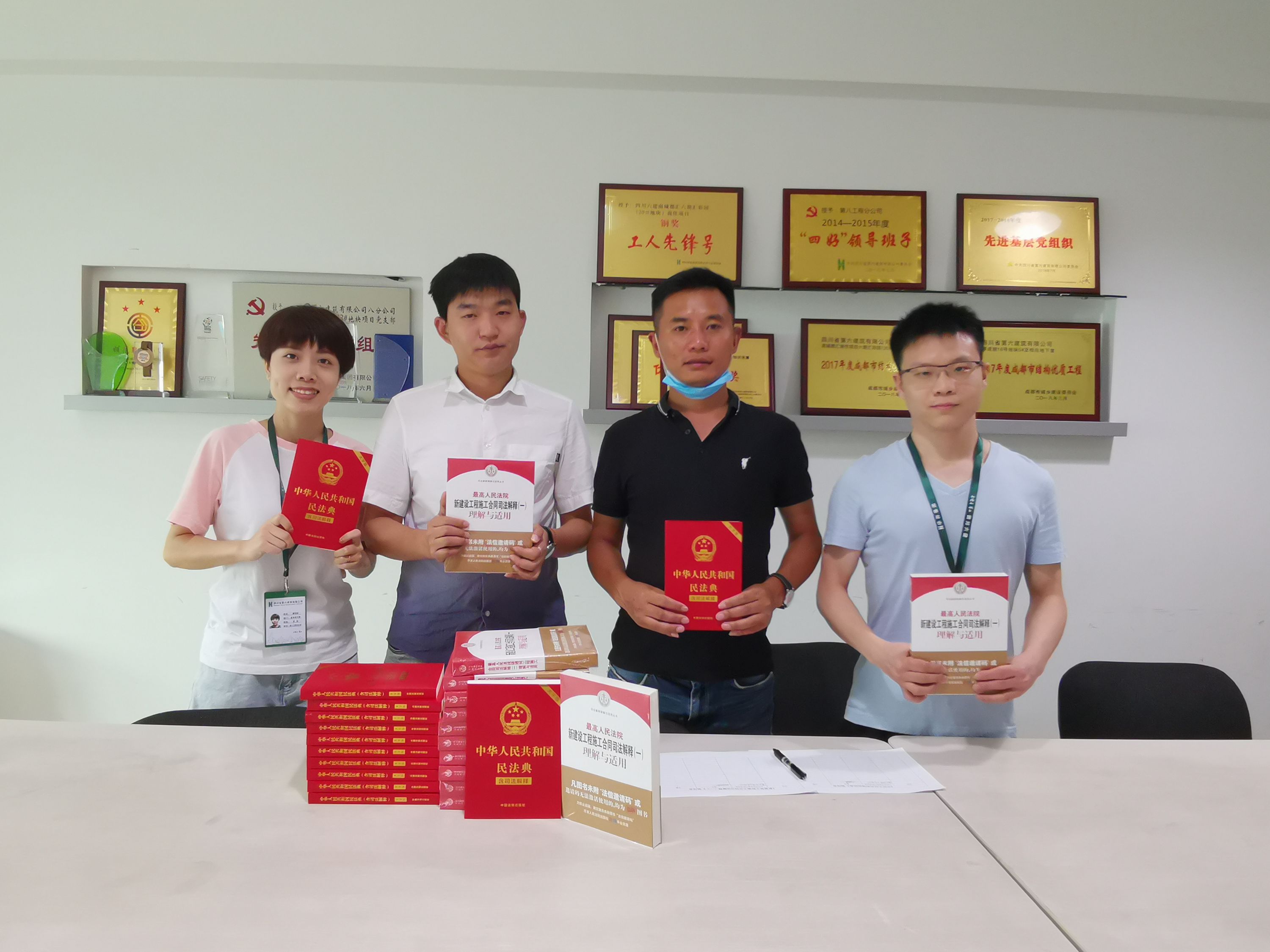 八分公司法務(wù)部門在走訪基層項(xiàng)目中發(fā)現(xiàn),項(xiàng)目部在處理一些法律事務(wù)時(shí)因?qū)ㄖI(lǐng)域的專項(xiàng)法律條款不甚了解而存有疑惑。分公司立足基層項(xiàng)目需求,秉承為基層群眾們辦實(shí)事的服務(wù)理念,特向基層項(xiàng)目贈(zèng)送了《民法典》和《新建工合同司法解釋一》。