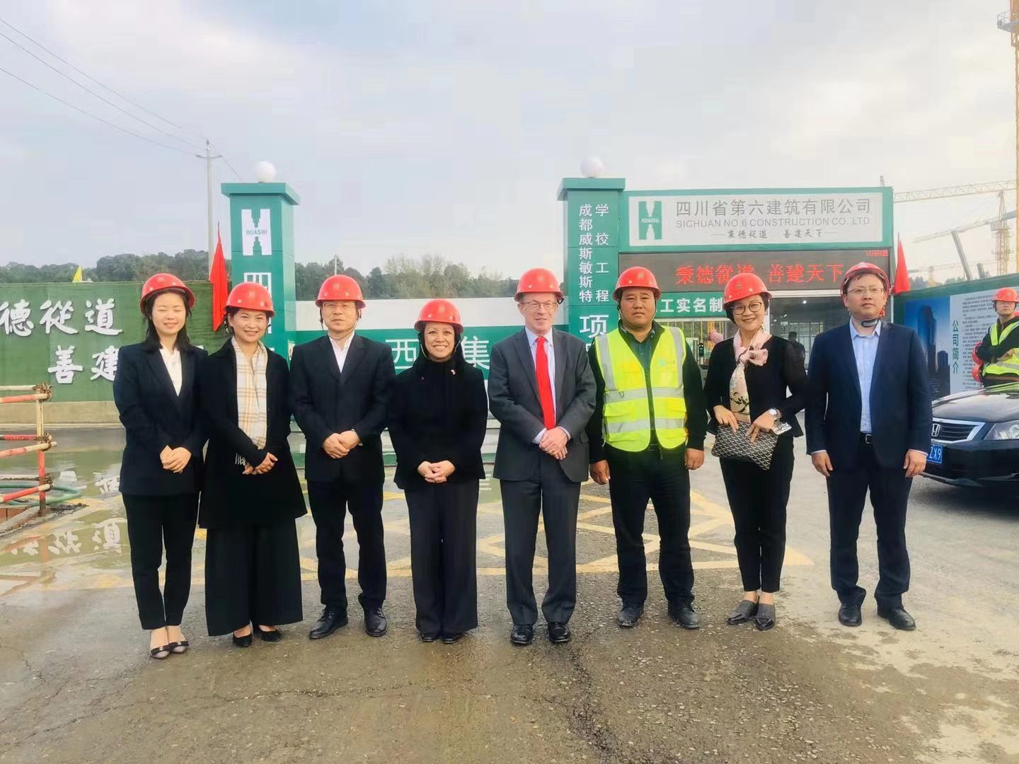 近日,英國駐重慶總領事館總領事艾佩詩女士(Ms Cecille EI Beleidi)、雙流區(qū)政府副區(qū)長王小樂一行調研由三分公司承建的威斯敏斯特學校項目。一踏進成都威斯敏斯特學校項目,總領事被繁忙的工作場景所吸引,建設現(xiàn)場熱火朝天、井然有序,鋼筋混泥土支柱拔地而起,龐大的校園輪廓已勾勒成形!綠樹環(huán)繞的淺山背景,形成了成都威斯敏斯特學校獨有的天際線,環(huán)繞學校的小河,岸邊的蘆葦和不時略過的飛鳥,已然形成一幅綠色、自然、生態(tài)的學校畫面??傤I事詳盡詢問了項目的建設計劃和執(zhí)行情況,由衷地贊嘆成都威斯敏斯特學校日新月異且優(yōu)質高效的建設進度。目前,成都威斯敏斯特學校項目正按照既定目標順利推進,部分區(qū)域地下室底板施工已完成,1-A、1-C教學樓,2、3號學生公寓基礎施工已完成,預計2020年9月建成開學。