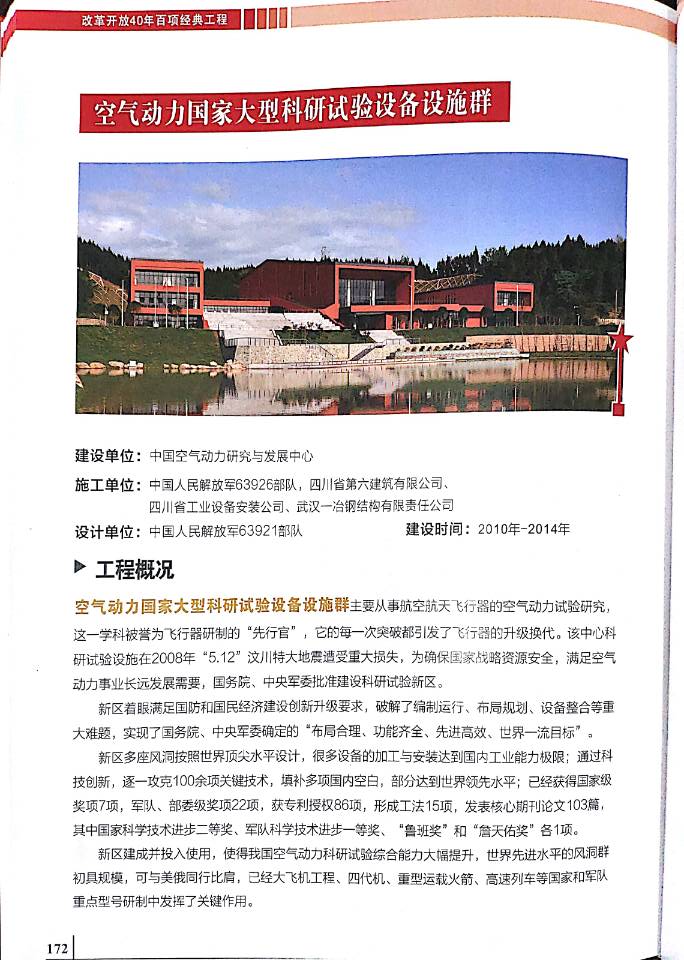 “空氣動(dòng)力國(guó)家大型科研實(shí)驗(yàn)設(shè)備設(shè)施群”被評(píng)為改革開放四十周年百項(xiàng)經(jīng)典工程