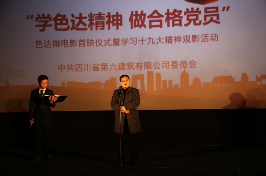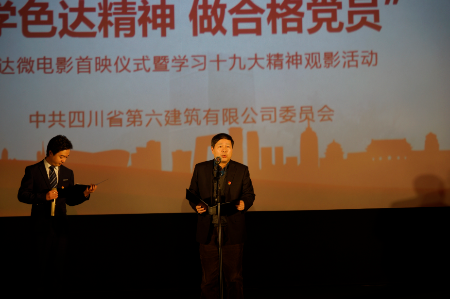 2017年12月14日,由公司黨委拍攝的“愛在六建”系列第二部微電影《色達 愛你在4000米高原》成功舉行了首映儀式,集團黨委副書記鐘曉為色達黨員突擊隊授旗,集團副總經(jīng)理、康定災(zāi)后重建總指揮長萬曉林發(fā)表重要講話,集團相關(guān)部門及公司領(lǐng)導(dǎo)出席此次活動,公司黨委書記、董事長任予鋒同志致活動開幕詞。