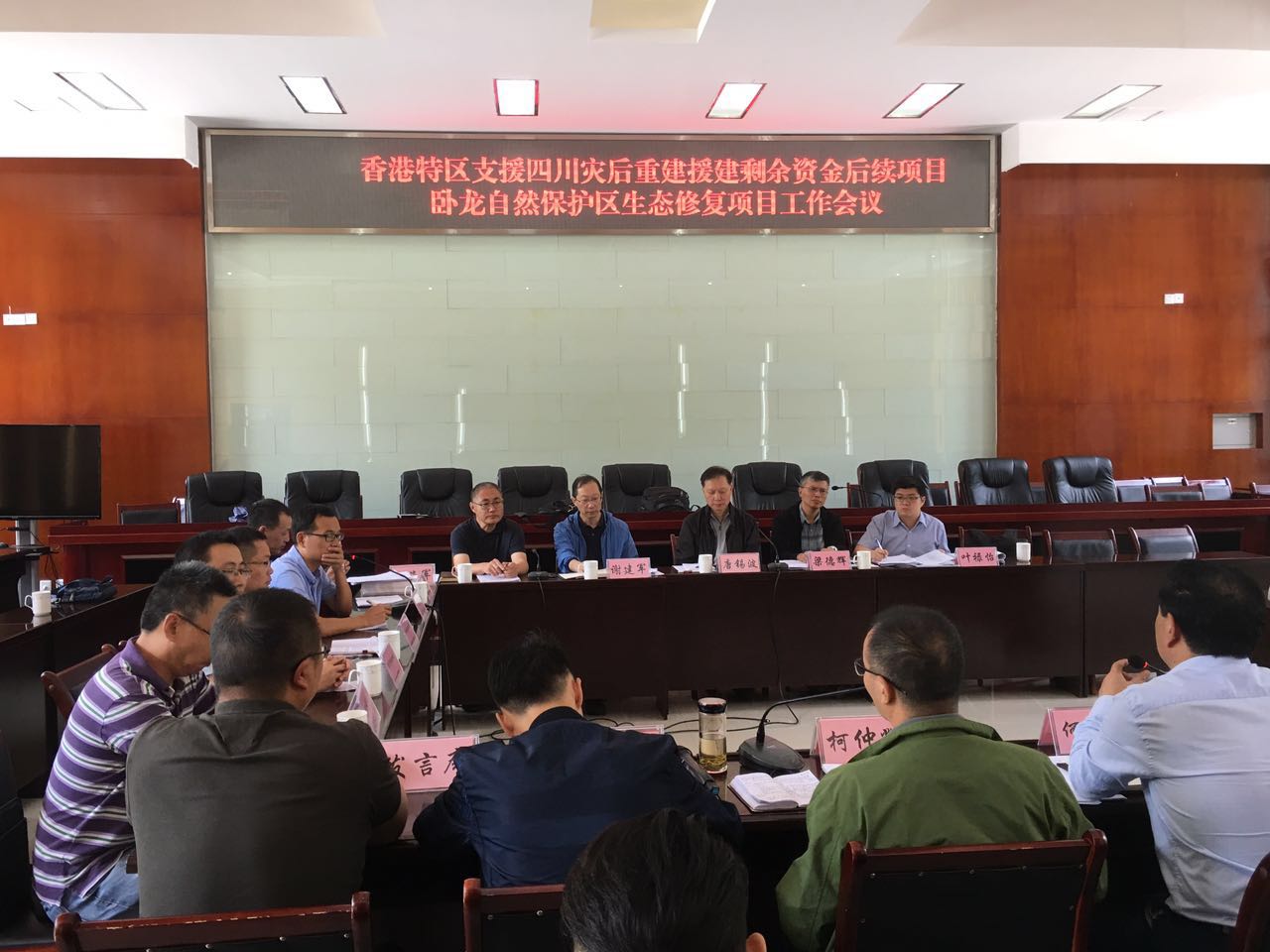8月28日上午,四川省汶川臥龍?zhí)貏e行政區(qū)管理局組織召開了“香港特區(qū)支援四川災后重建援建剩余資金后續(xù)項目臥龍自然保護區(qū)生態(tài)修復項目”工作會議。香港支援四川災后重建小組副組長唐錫波先生一行、省發(fā)改委省引進外資項目辦副主任謝建軍、省林業(yè)廳保護站副站長顧海軍、四川臥龍國家級自然保護區(qū)管理局何小平局長、以及設計、監(jiān)理、施工單位代表共計37人參加了會議。