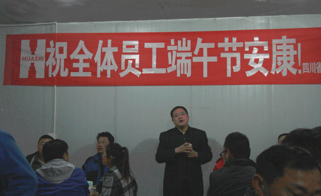 “各位同志們都辛苦了!如今大家也已經(jīng)在這片高原上奮戰(zhàn)了兩個(gè)月!首先,我代表集團(tuán)公司陳貴林董事長(zhǎng)、劉平書(shū)記和楊斌總經(jīng)理向大家說(shuō)一聲‘謝謝大家,感謝大家的堅(jiān)持和付出!’借此端午節(jié)之際,我特意代表集團(tuán)公司及我自己來(lái)到這里看望大家,慰問(wèn)大家。在這里我以茶代酒,敬大家一杯!”在開(kāi)餐前,萬(wàn)總向大家講道,“同志們,幸苦了,讓我們自己為自己干一杯!大家再接再厲!集團(tuán)期待你們的高歌凱旋!大家有沒(méi)有信心!”“有!”伴隨著萬(wàn)總的祝詞,每一位參戰(zhàn)員工熱情高漲,斗志昂揚(yáng)!