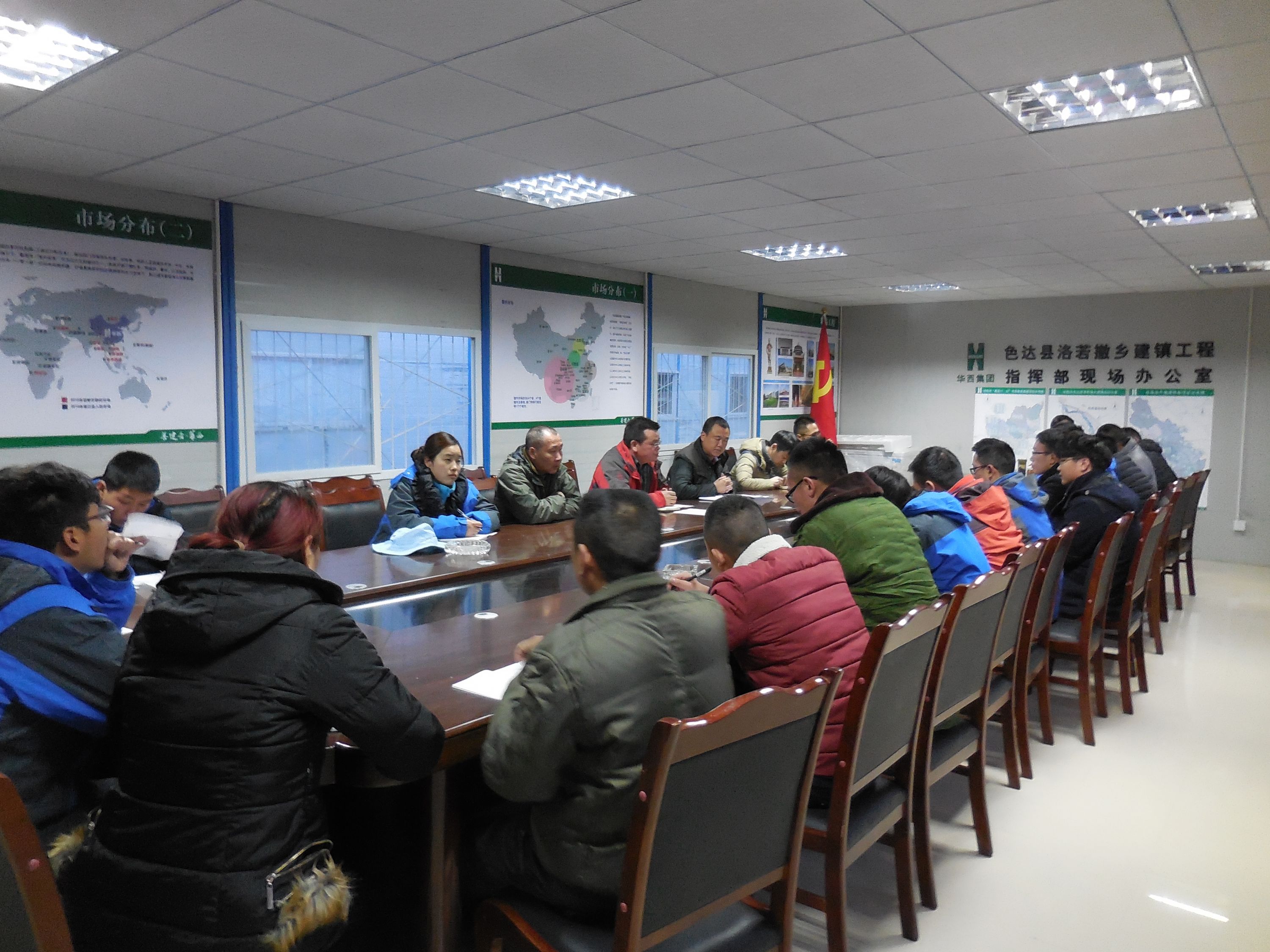 首批管理人員、食堂人員及工人共18人于4月5日動(dòng)身前往色達(dá)縣,拉開了今年色達(dá)工程施工任務(wù)的帷幕。4月10日,第二批管理人員共計(jì)19人抵達(dá)色達(dá)。在開工前首次管理人員會(huì)議上,明確了調(diào)整后的項(xiàng)目管理團(tuán)隊(duì)成員各自的職責(zé)分工,并對(duì)正式開工前的相關(guān)工作進(jìn)行了安排布置。
