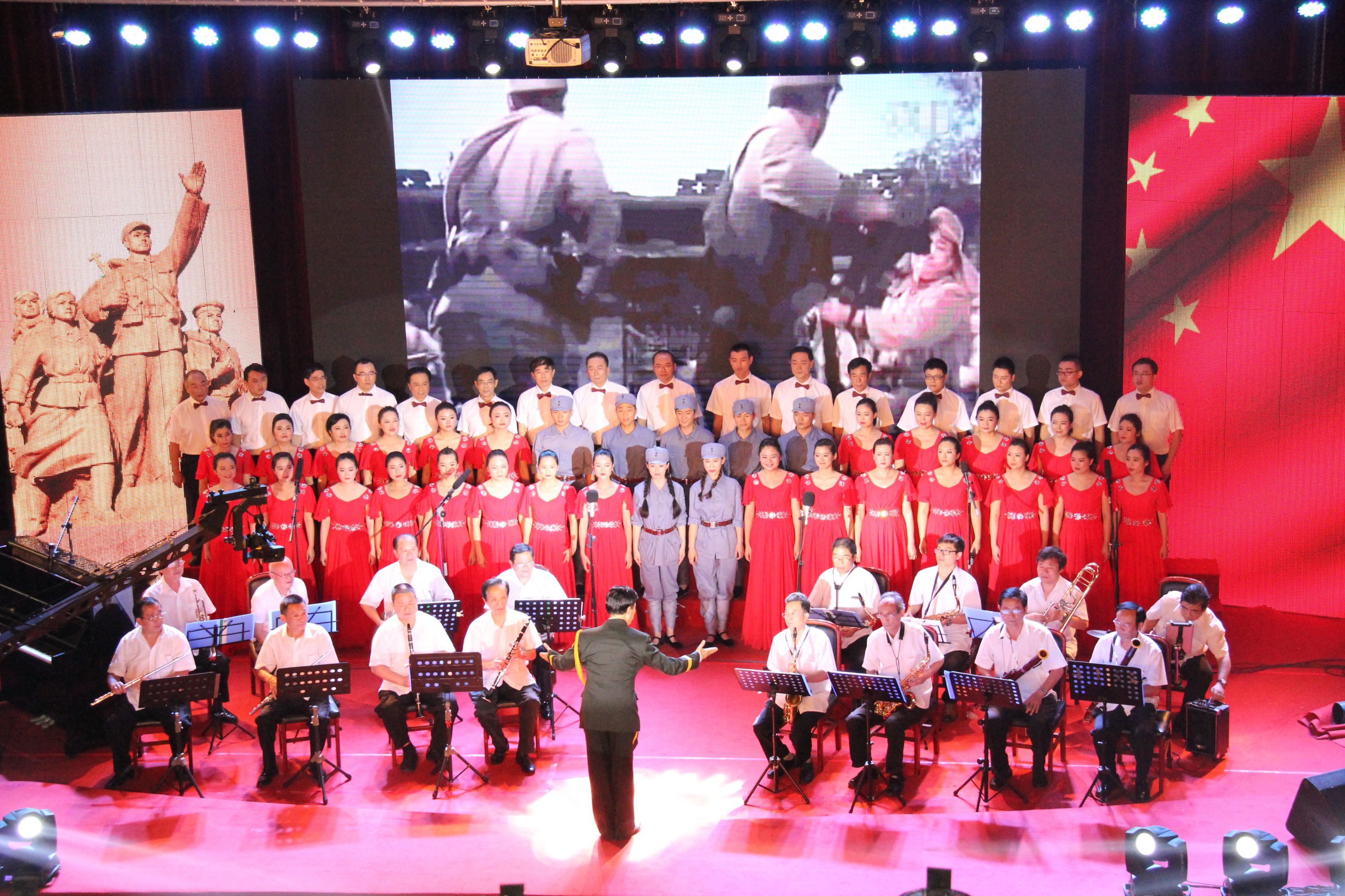 8月28日,40余名職工穿著八路軍軍裝和莊重典雅的禮服,以飽滿的熱情,動(dòng)人的旋律,激情飛揚(yáng)的歌聲向那段難忘的歷史歲月致敬,詮釋了中國人民永不屈服的抗戰(zhàn)精神。一首挺拔矯健的《游擊隊(duì)之歌》展現(xiàn)了抗日游擊隊(duì)員的機(jī)智勇敢;一首氣勢(shì)磅礴的《在太行山上》表達(dá)了昂揚(yáng)的斗志與抗敵的信心。同事們的精彩表演,贏得了集領(lǐng)導(dǎo)、評(píng)委和觀眾的陣陣掌聲。最終,經(jīng)過評(píng)委的考評(píng),六公司以扎實(shí)的演唱實(shí)力和出色的舞臺(tái)表現(xiàn)力脫穎而出,榮獲一等獎(jiǎng)。
