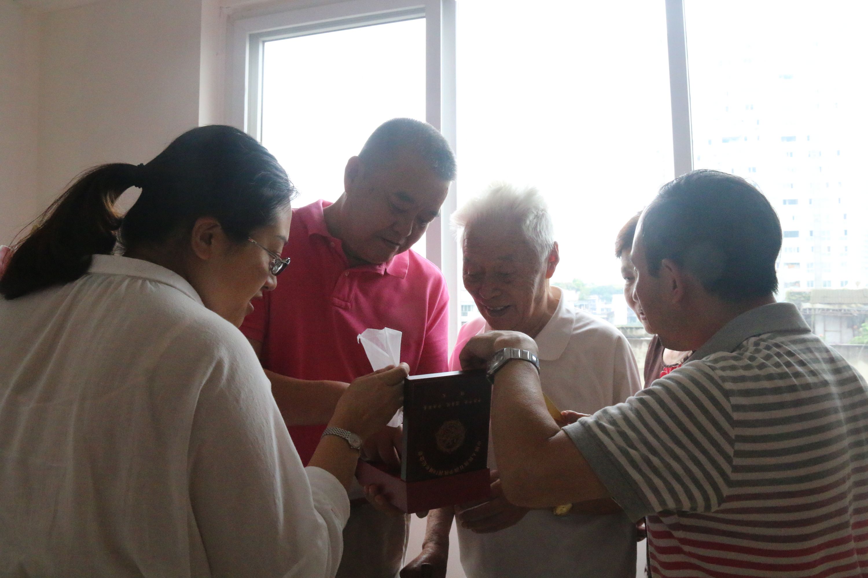 慰問小組親自上門慰問了德陽、綿陽和成都地區(qū)的6位抗戰(zhàn)老英雄:侯玉璋、徐清玉、田洪、裴永山、唐超華、斯俊,這些經(jīng)歷過抗日戰(zhàn)爭的老英雄,都在戰(zhàn)火紛飛中為中華民族而浴血奮戰(zhàn),又在和平時期進入六公司為企業(yè)的發(fā)展做出貢獻,他們?yōu)閲鵀槠蠓瞰I出了自己的一生,年齡均在80歲以上,最大的斯俊更是已經(jīng)95歲高齡。這些老人平日里在家頤養(yǎng)天年,但當(dāng)他們看到公司領(lǐng)導(dǎo)親自上門為他們送上的鮮花和水果,聆聽公司領(lǐng)導(dǎo)的祝福與叮囑,仍然激動得不能自己。田洪因身體不適正在職工醫(yī)院住院,當(dāng)他在病床前拿到由公司領(lǐng)導(dǎo)轉(zhuǎn)交的抗戰(zhàn)紀念勛章時,不由得感動的高呼:中國萬歲!共產(chǎn)黨萬歲!