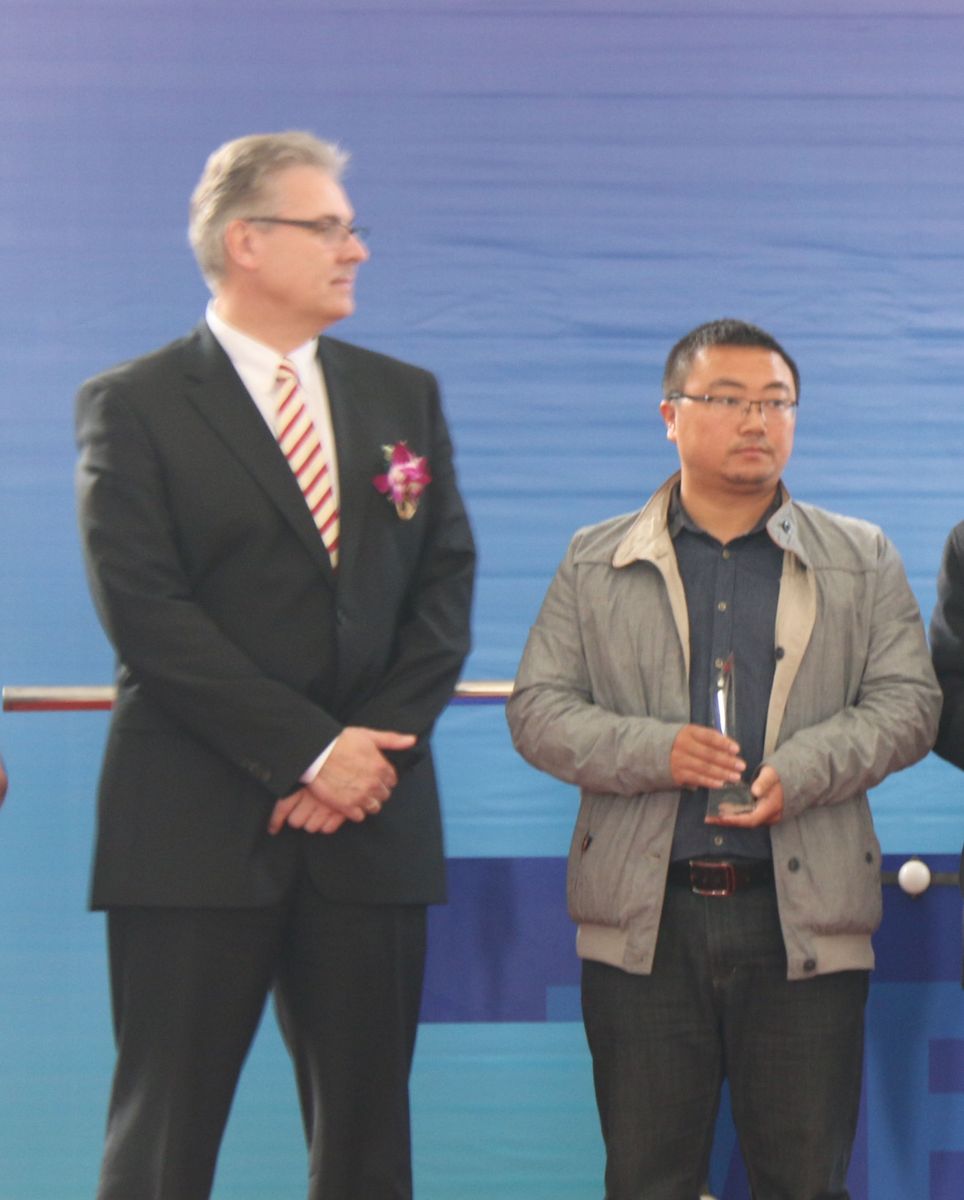 3月17日,MT集團(tuán)成都工廠的投產(chǎn)儀式上,在成都市領(lǐng)導(dǎo)、新都區(qū)領(lǐng)導(dǎo)、MT集團(tuán)領(lǐng)導(dǎo)、公司領(lǐng)導(dǎo)等代表的見證下,三分公司梅特勒項(xiàng)目經(jīng)理丁瑞豐從MT集團(tuán)總裁Robert手中接過了“優(yōu)秀客戶獎(jiǎng)”的獎(jiǎng)杯,一年來的辛勞得到了業(yè)主的大力贊賞。