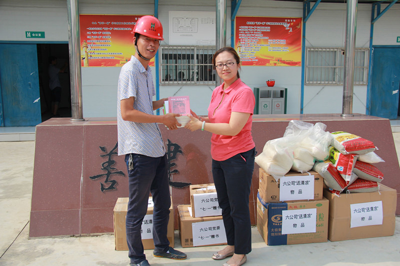 2016年送清涼活動(dòng)與以往不同的是,六公司工會(huì)把這項(xiàng)常規(guī)工作做出了新意,工會(huì)主席趙尤蕾帶領(lǐng)黨工部、工會(huì)工作人員,黨群聯(lián)動(dòng),“三送進(jìn)項(xiàng)目”。除了送清涼,同時(shí)也要送知識、送指導(dǎo)。