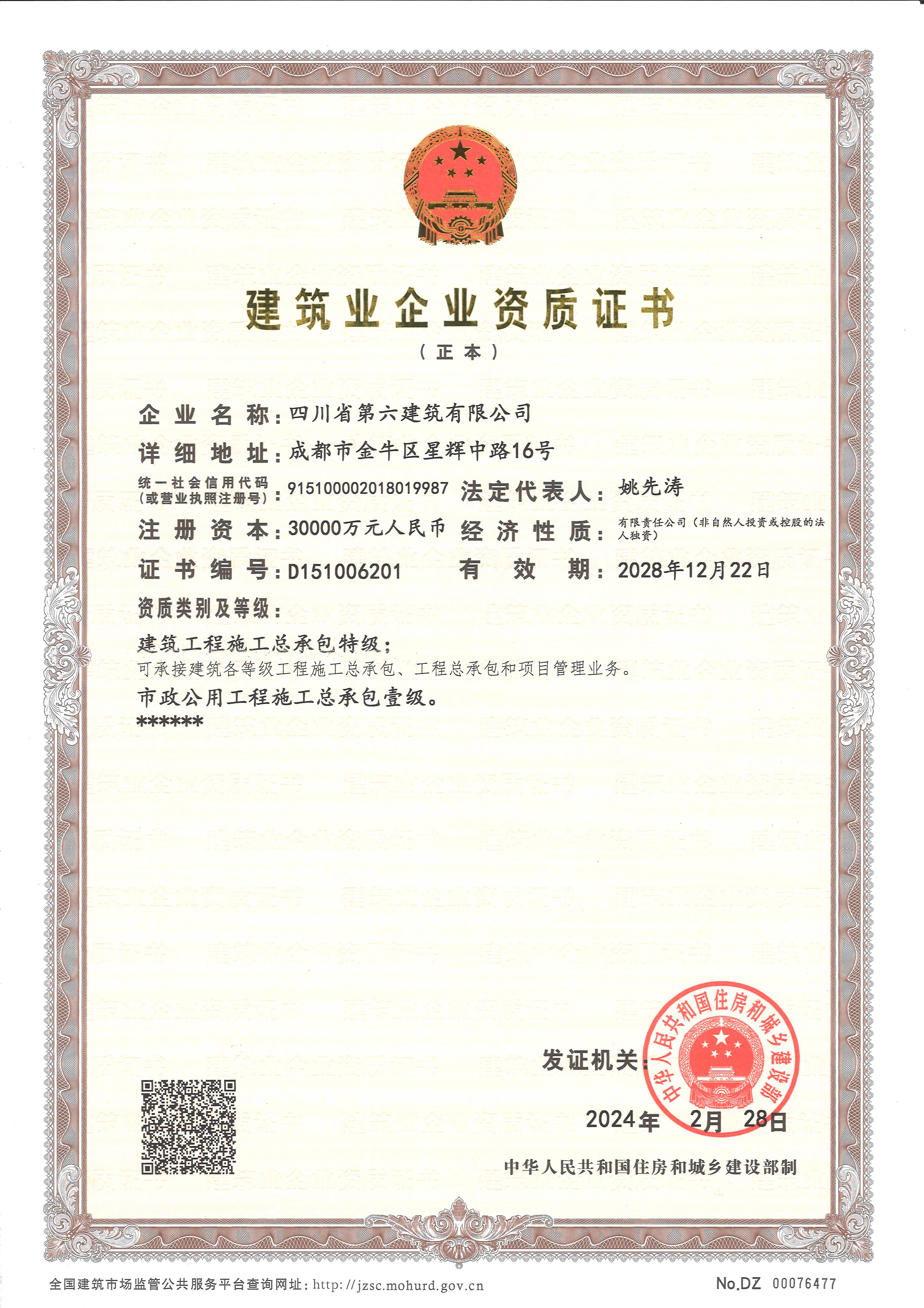 您現(xiàn)在的位置: 網(wǎng)站首頁-> 關(guān)于六建-> 公司證照